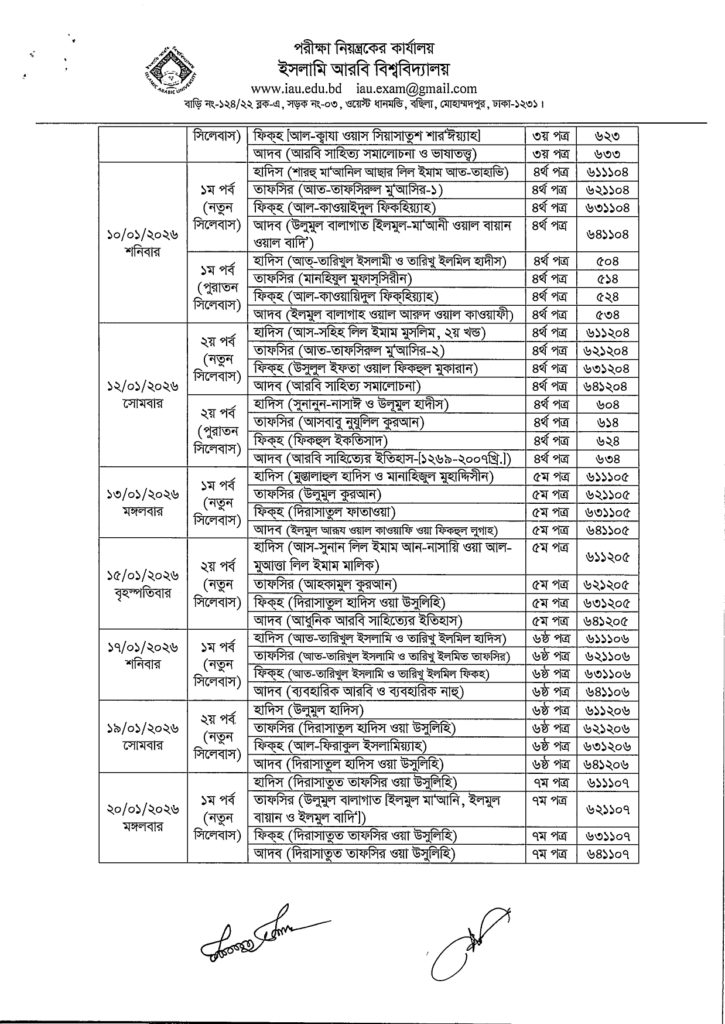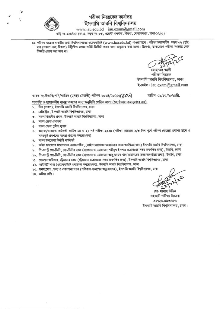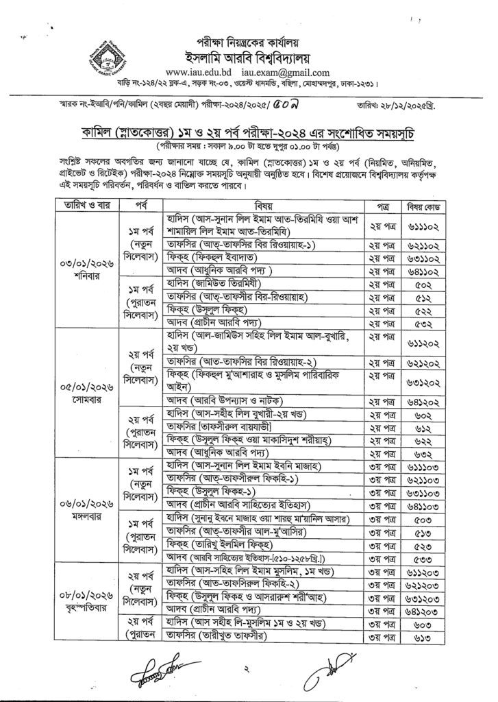 কামিল (স্নাতকোত্তর) ১ম ও ২য় পর্ব পরীক্ষা-২০২৪ এর সংশোধিত সময়সূচি