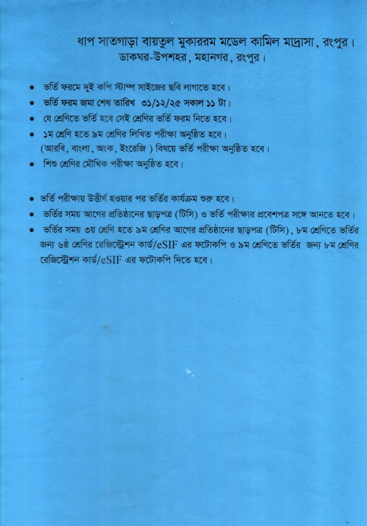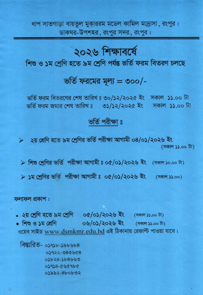 ২০২৬ শিক্ষাবর্ষে ভর্তি বিজ্ঞপ্তি : ( শিশু হতে নবম শ্রেণি পর্যন্ত),