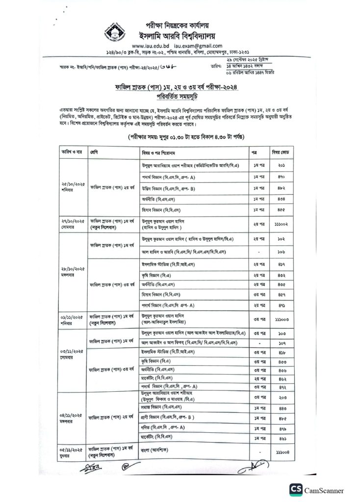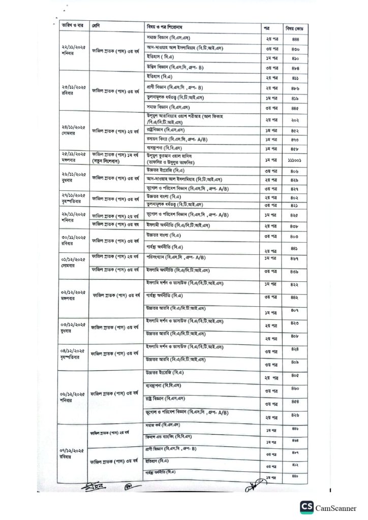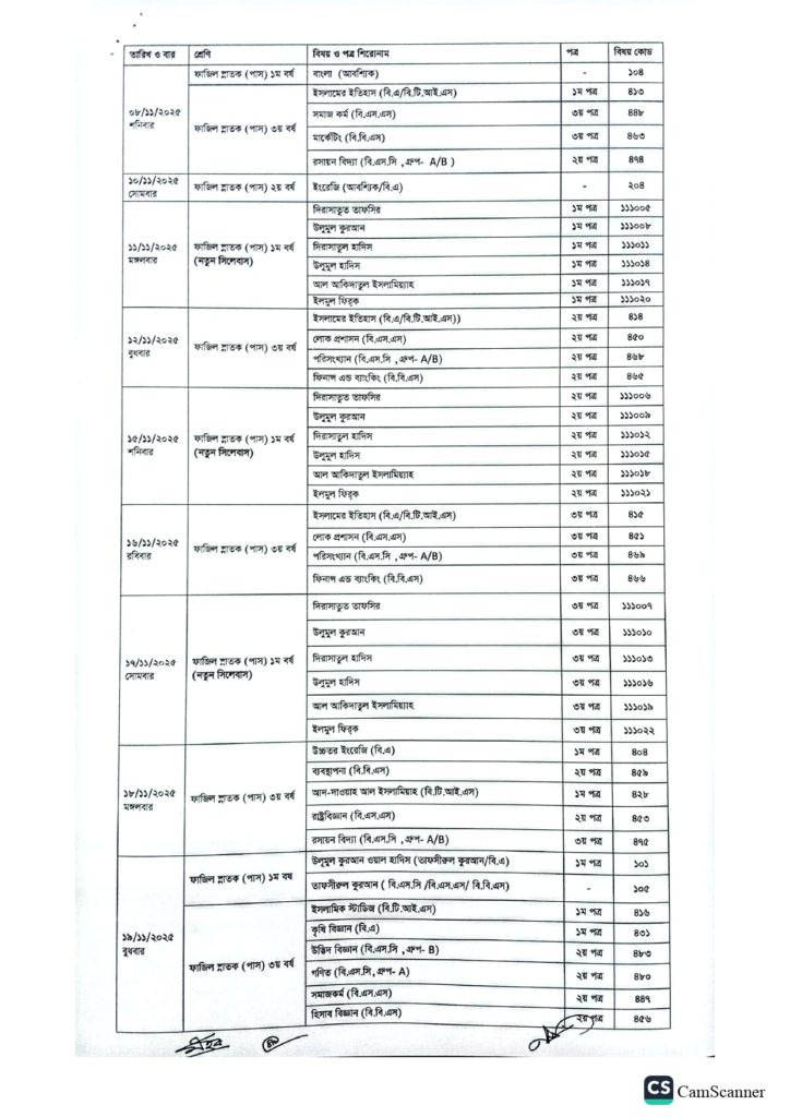 ফাজিল স্নাতক (পাস) ১ম, ২য় ও ৩য় বর্ষ (নিয়মিত, অনিয়মিত, প্রাইভেট, রিটেইক ও মান-উন্নয়ন) পরীক্ষা-২০২৪ এর সময়সূচি (পরিবর্তিত)