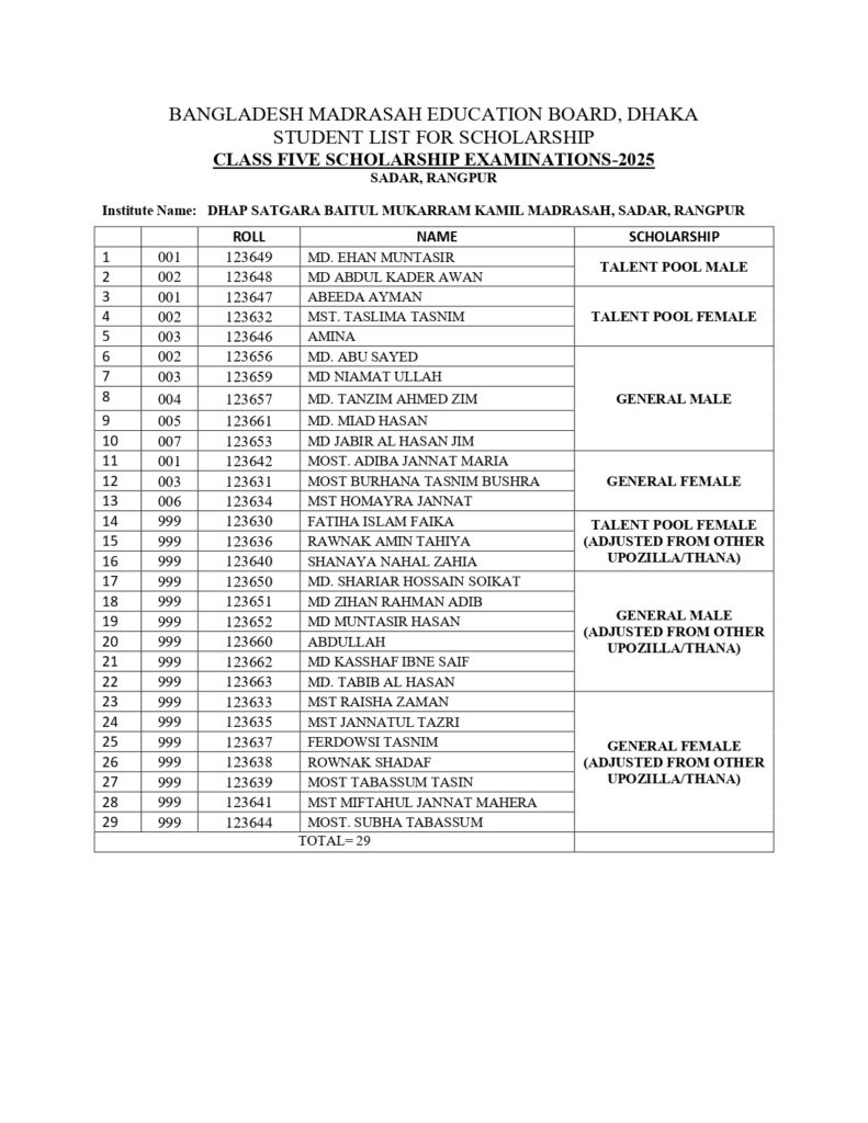 ২০২৫ সালের ৫ম ও ৮ম শ্রেণির সাধারণ ও মেধাবৃত্তি প্রাপ্তদের তালিকা