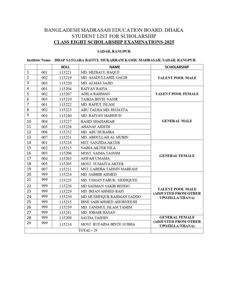 ২০২৫ সালের ৫ম ও ৮ম শ্রেণির সাধারণ ও মেধাবৃত্তি প্রাপ্তদের তালিকা: